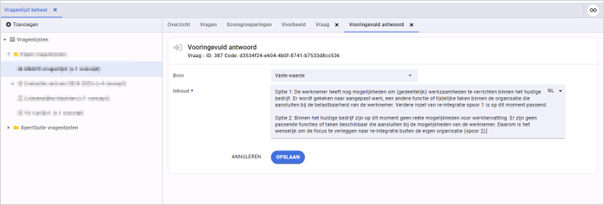 Het is mogelijk om vooringevuld antwoorden op te geven. Hierdoor hoeft de invuller niet handmatig stukken tekst te kopiëren en te plannen vanuit een ander document.